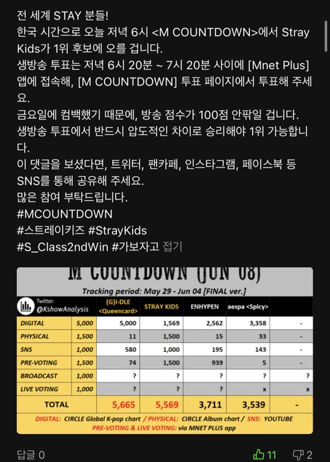 다들 투표 꼭 해줘.. 우리 애들 1등하게 해주자