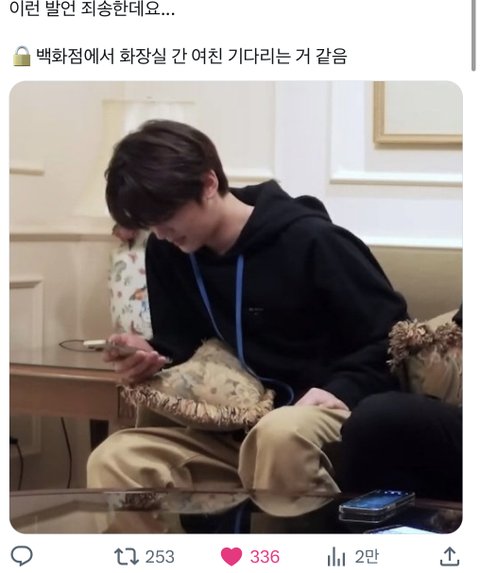이건 소파 색깔무늬모양까지 그냥 상황에 착붙이라 가져옴 옆에 여친가방끼고있다가 여친 나오면서 규빈아(오빠) 하면 강쥐웃음 사르르 지으면서 고개드는 상상.. ㅅㅂ 심장 뱅신됨
