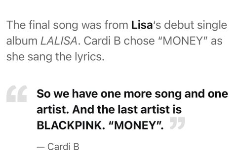 카디비가 라디오 나와서 마지막으로 틀 곡은 블랙핑크의 머니라고 말함… 리사 곡인데 왜자꾸 블핑 곡으로 소개하는지..