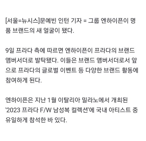 뭐지? 엔하이픈 프라다 앰버서더 됐대
