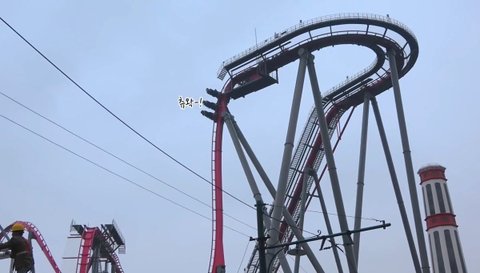 츄왁! 하고 가는 롤러코스터를 바라보는데