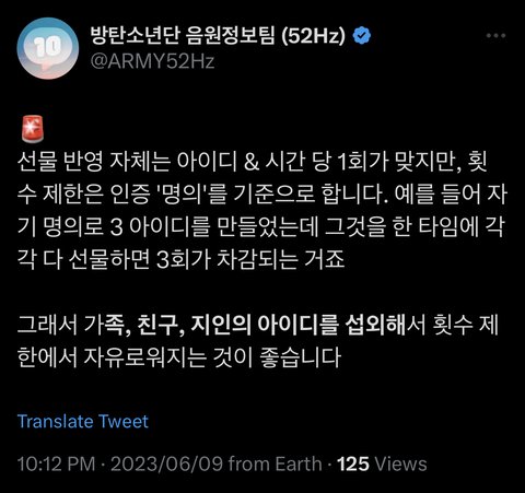내가 아이디를 3개 만들었는데 매 시간마다 각 아이디로 한번씩 선물하기를 해도 된다는거얌? 아님 나는 한명이니까 아이디는 3개가 있어도 시간당 아이디 3개 중 하나로 선물하기를 해야 한다는거얌? 헷갈려ㅠㅠ