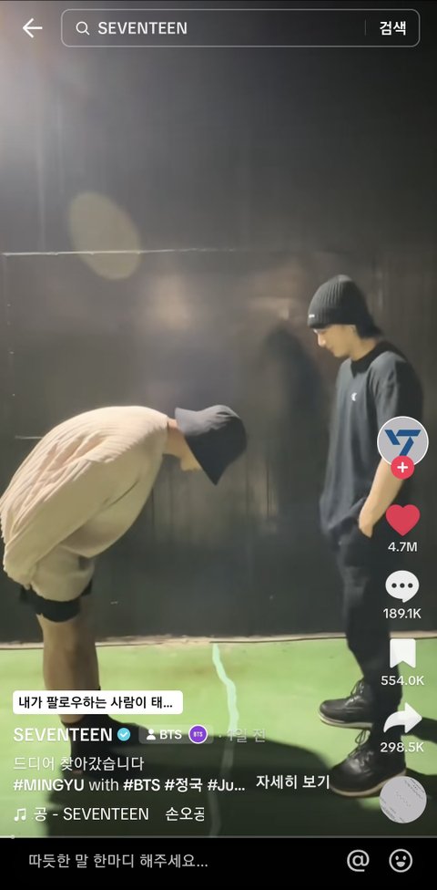 정국이 틱톡킹임 케이팝에서 개인중 젤 높자나