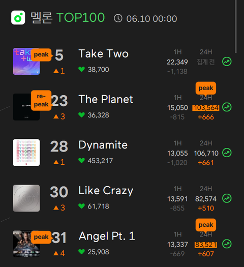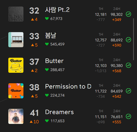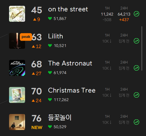 스밍리스트 모든곡 차트인