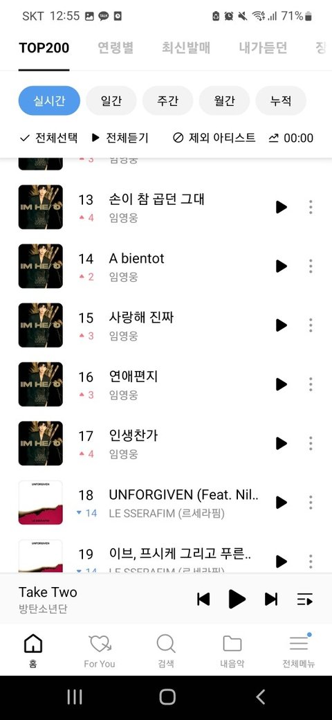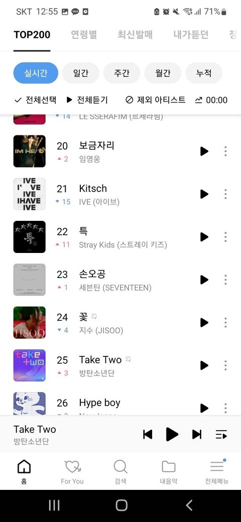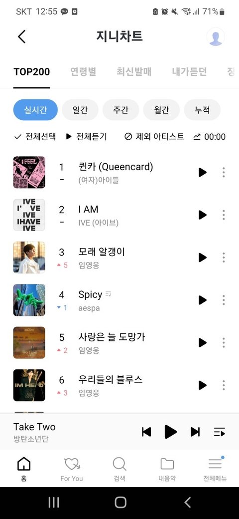 지금 지니뮤직 인기차트 월간,주가,일간,실시간,누적에 뉴진스 그 회색표지있는 노래 아예 안뜸..