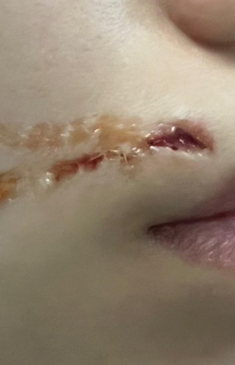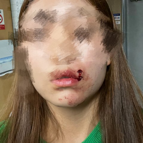 입은 꿰메야하는 상태고