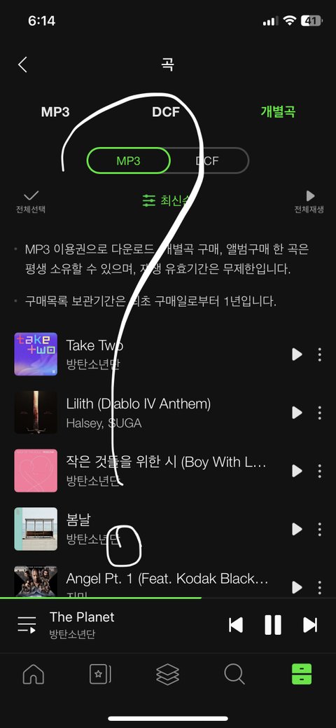방금 flac 다운 했는데 제대로 했는지 확인하려면 어떻게 해야돼? 인증한 아미들 보면 mp3 dcf 개별곡 옆에 flac이라고 있던데 나는 없어ㅠ 다운로드 관리자에 들어가 보니까 take two가 계속 다운로드 대기중이라고 하는데 이것 때문에 그런가? 아는 방울 설명 좀 부탁해요!