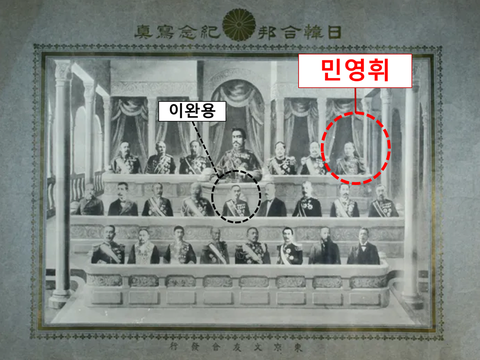1910년 한일강제합병 기념사진. 이완용보다 상석에 앉아있는 민영휘.