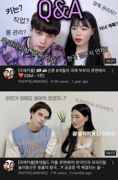 잘생기고 귀여운 우크라이나 존잘 연하남+똑부러지고 귀여운 한녀 언니 채널이고 방송 출연도 한 적 있음