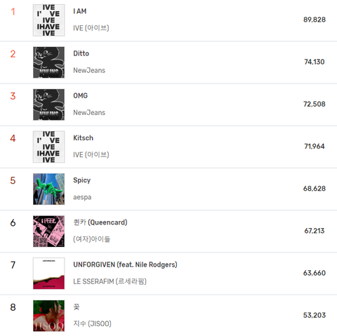아이브, 뉴진스, 르세라핌, 아이들, 에스파