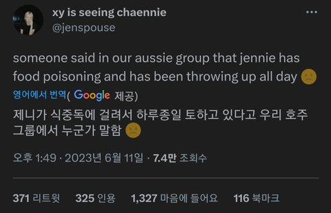 헐 제니 많이 아픈가봐 방금 무대 하다가