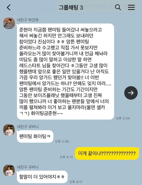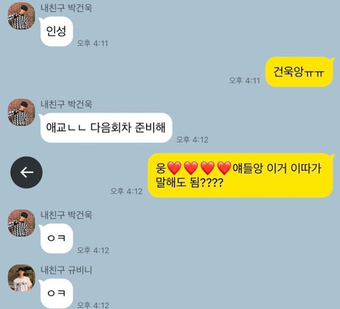 ㄱㅈㅎ에게 응원메시지 보냈는데 둘이 참 다르네