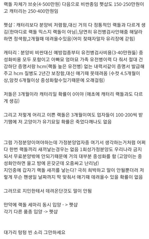 새끼 렉돌을 유기묘일지도 모른다고 희망회로 돌리는 애들은 걍 어케든 쉴드치는거지뭐 ㅋㅋㅋㅋㅋ... 심지어 한마리도 세마리면 ㅋㅋ