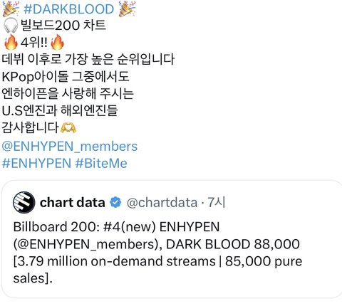 헉 엔진들아 우리 빌보드 200 4위