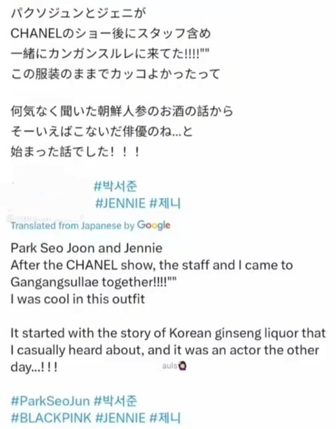 박서준&제니 목격담 올라옴