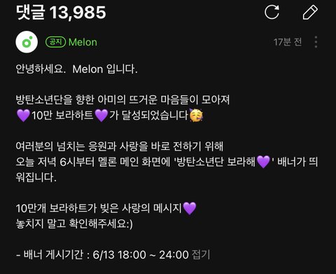 원래 15일까진뎈ㅋㅋ 달성해서 오늘 6시부터 보라하트 나오나봐>.<