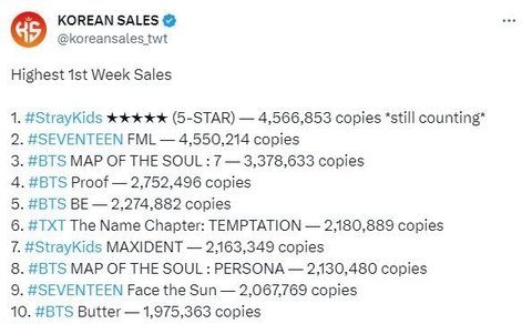 스키즈 역대 kpop 초동 기록 달성