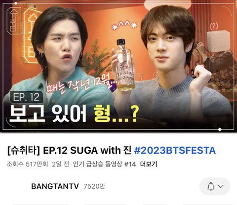 슈취타 이틀만에 오백만 미쳤눈데 왜 인동 상위권에는 못 듦..?ㅠㅠ