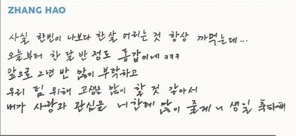 이 와중에 장하오 맞춤법 띄어쓰기 너무 완벽해
