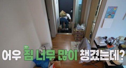 나가면서 짐 너무 많이 챙겼다고 투덜대는 기안