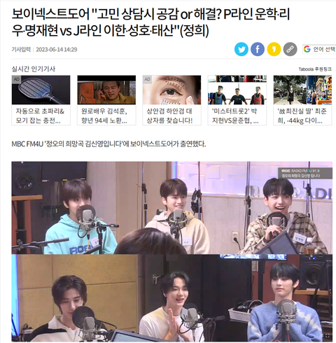 보넥도 정오의 희망곡에서 엠비티아이 공개함