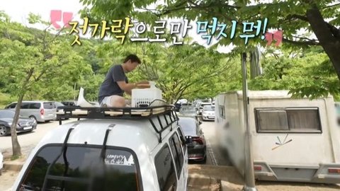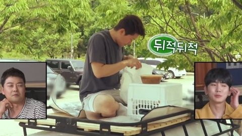 렉 위에서 먹으려고 열심히 준비함