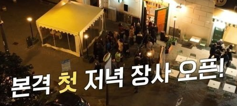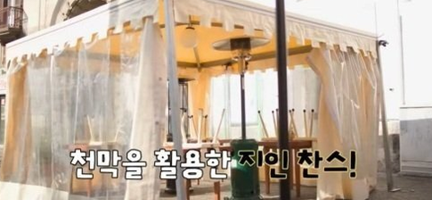 일부러 가게 바깥에 천막 쳐서 바깥 자리 만듦