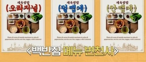 한식이라 잘 모르니까 아예 샘플 음식 전시