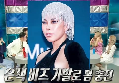 연말 시상식에서 은색 비즈 가발을 쓰고 나타난 가비