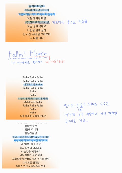 폴링플라워 듣다가 가사 이어지는 거 보고