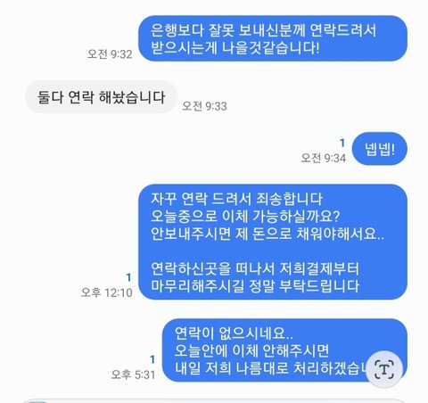 오늘안에 꼭좀 보내달라고 문자보냈는데 그이후로