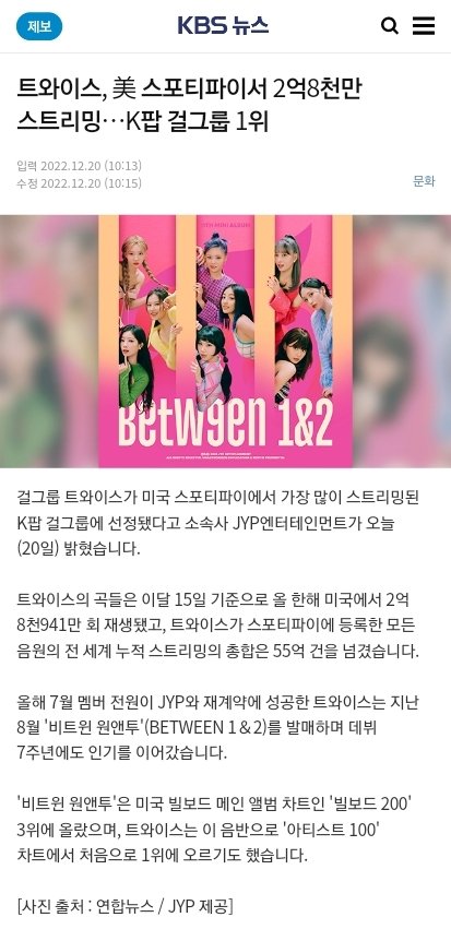 직년 미국스포티 1위가 트와라고