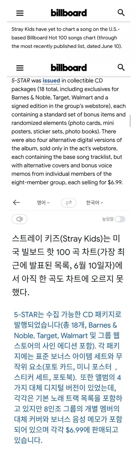 빌보드에서 공식적으로 200차트는 들었지만 핫백차트는 못들었고 앨범 종수랑 랜덤요소 많다고 언급