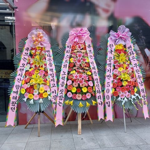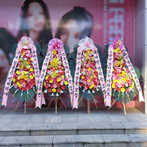 (화환 위치가 원래 아티스트 사진 앞이 아니었는데 기사님이랑 이야기가 잘못돼서 저기로 다 가버렸대 혹여나 불편하면 미안ㅠ)
