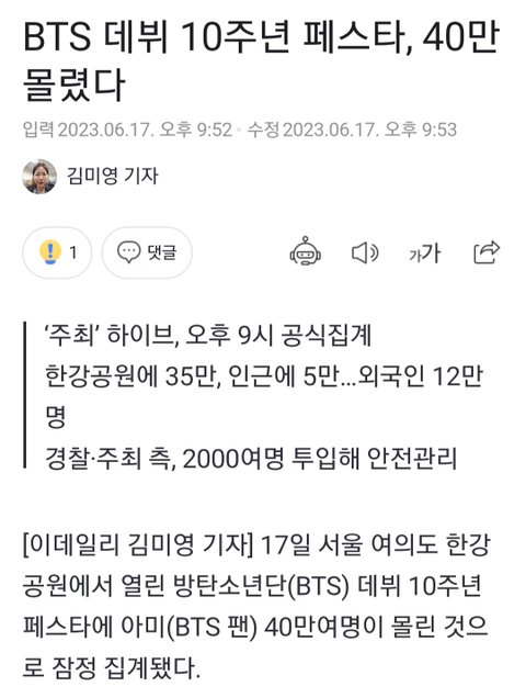 방탄 여의도 행사 40만명 몰려