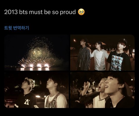 13년도의 여의도 불꽃놀이를 보던 방탄은 성장해서…23년도에 팬들을 위해 여의도에서 불꽃축제를 하는 가수가 됐음… 영화도 이렇게 못 만들어 ㅠ