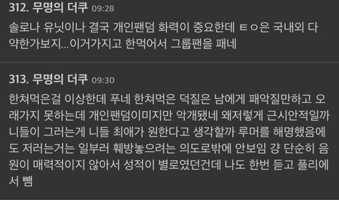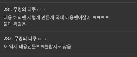 솔직히 태용 악개가 갤,판 먹은거 모르는 팬들 없을듯 ㅋㅋ 엔시티 타멤 뿐만 아니라 타돌들도 태용 악개들이 패고다닐거 눈에 훤함