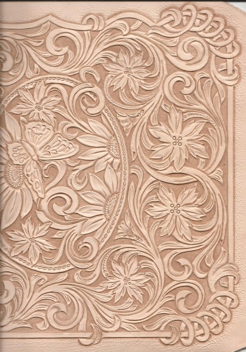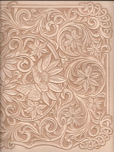 베지터블 생가죽에 플라워 디자인을 카빙(가죽 손조각)하였습니다.(마디샤 가죽공예