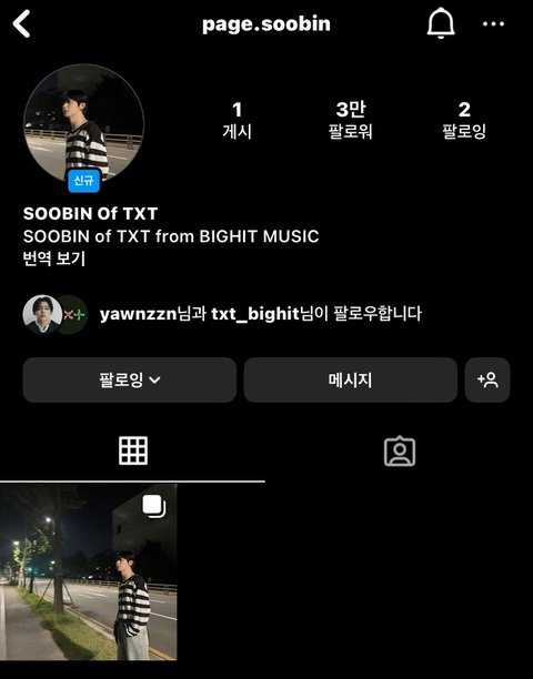 얀쯘님이 페이지수빈님 인스타 개설 축하함