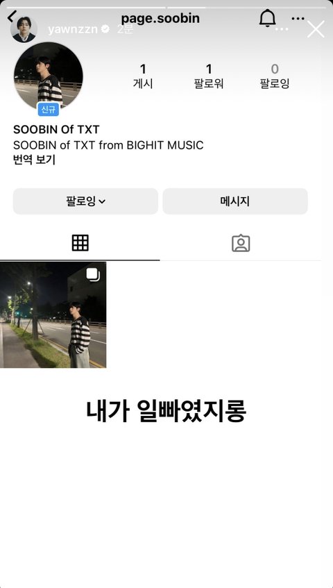 얀쯘님이 페이지수빈님 인스타 개설 축하함