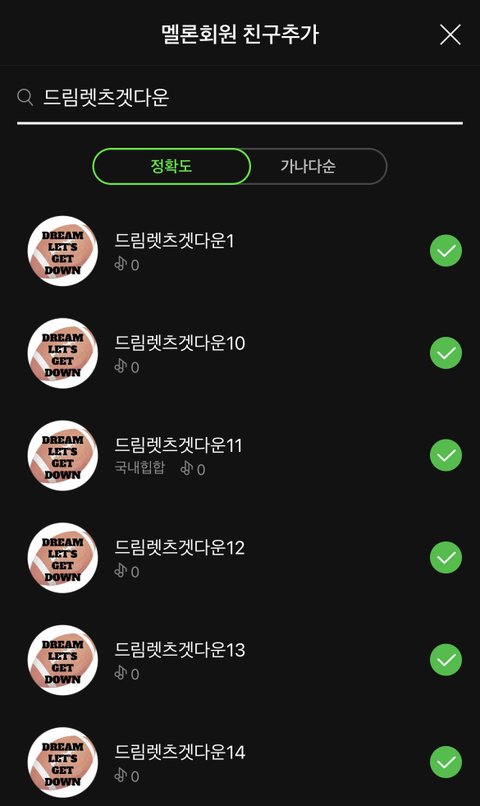 드림렛츠겟다운 검색하고 1~27까지 친구추가 하기