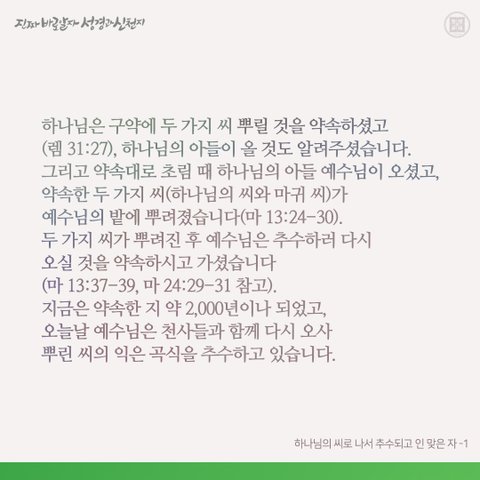 추수된 알곡들은 하나님의 말씀으로 인쳐서
