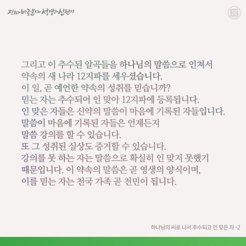 약속의 새 나라 12지파에 등록되어야 천국 가족이 될 수 있습니다.