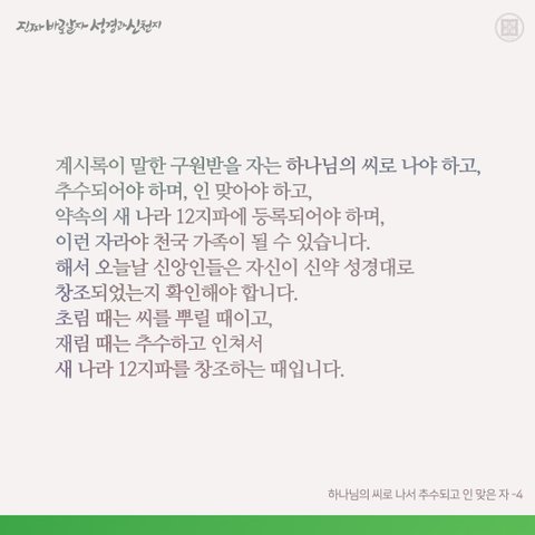 하나님의 씨로 나야 하고 추수되어야 하며,
