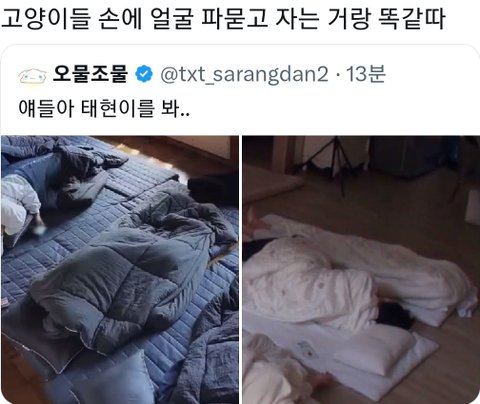 태현이처럼 자는 뫄깅 있어..? 아니 보기엔 다람쥐 웅크린것 같아서 너무 귀여운데 숨막힐것 같아ㅋㅋ큐ㅠ