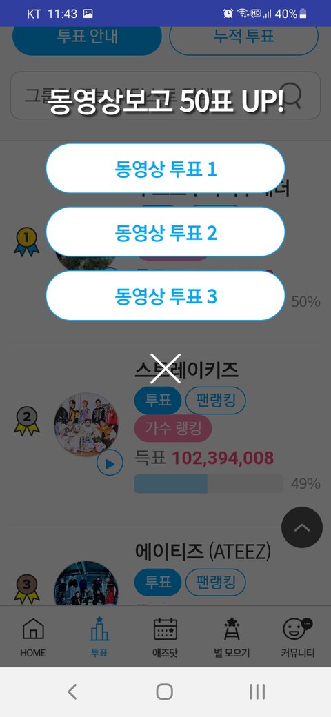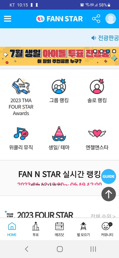 팬앤스타 로긴-포스타투표-10분마다 사진옆 재생버튼 누르면 무료투표되!