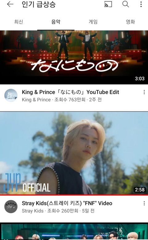 인기급상승음악에 스키즈 뮤비 3개 있음