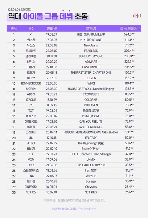 ㅇㅅㅇ 데뷔 역대 초동 기록 안깨졌다며 그냥 넘길 수 있을까 궁금해서?