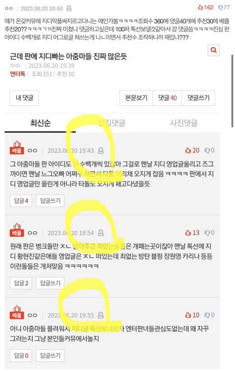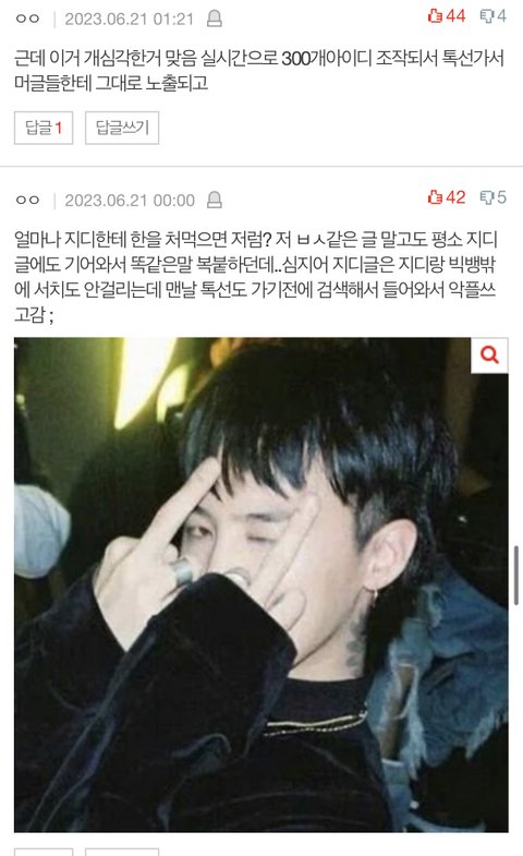 베플도 지디팬들이 잘 올려놨는데 몇분만에 배플 싹 갈아버리네