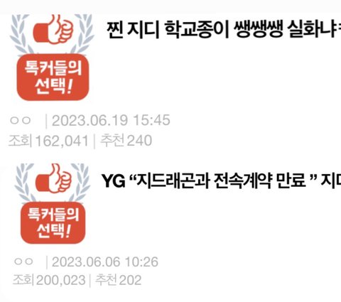 지디글은 순수하게 조회수로 톡선가는거임